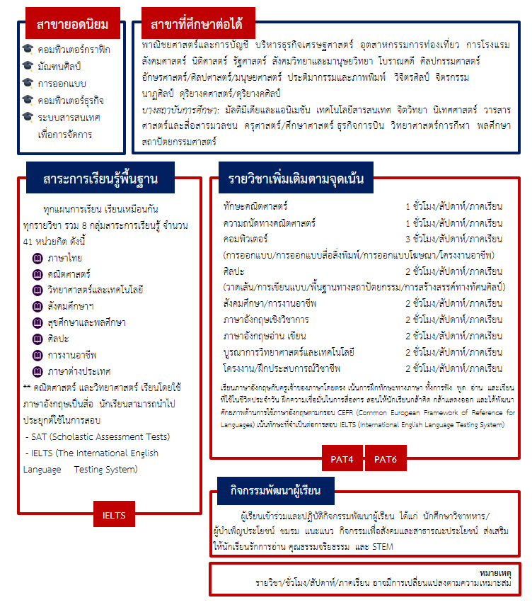 โดยมีห้องปฏิบัติการศิลปะ ห้องปฏิบัติการคอมพิวเตอร์ ที่รองรับศักยภาพของนักเรียนในแผนการเรียนนี้